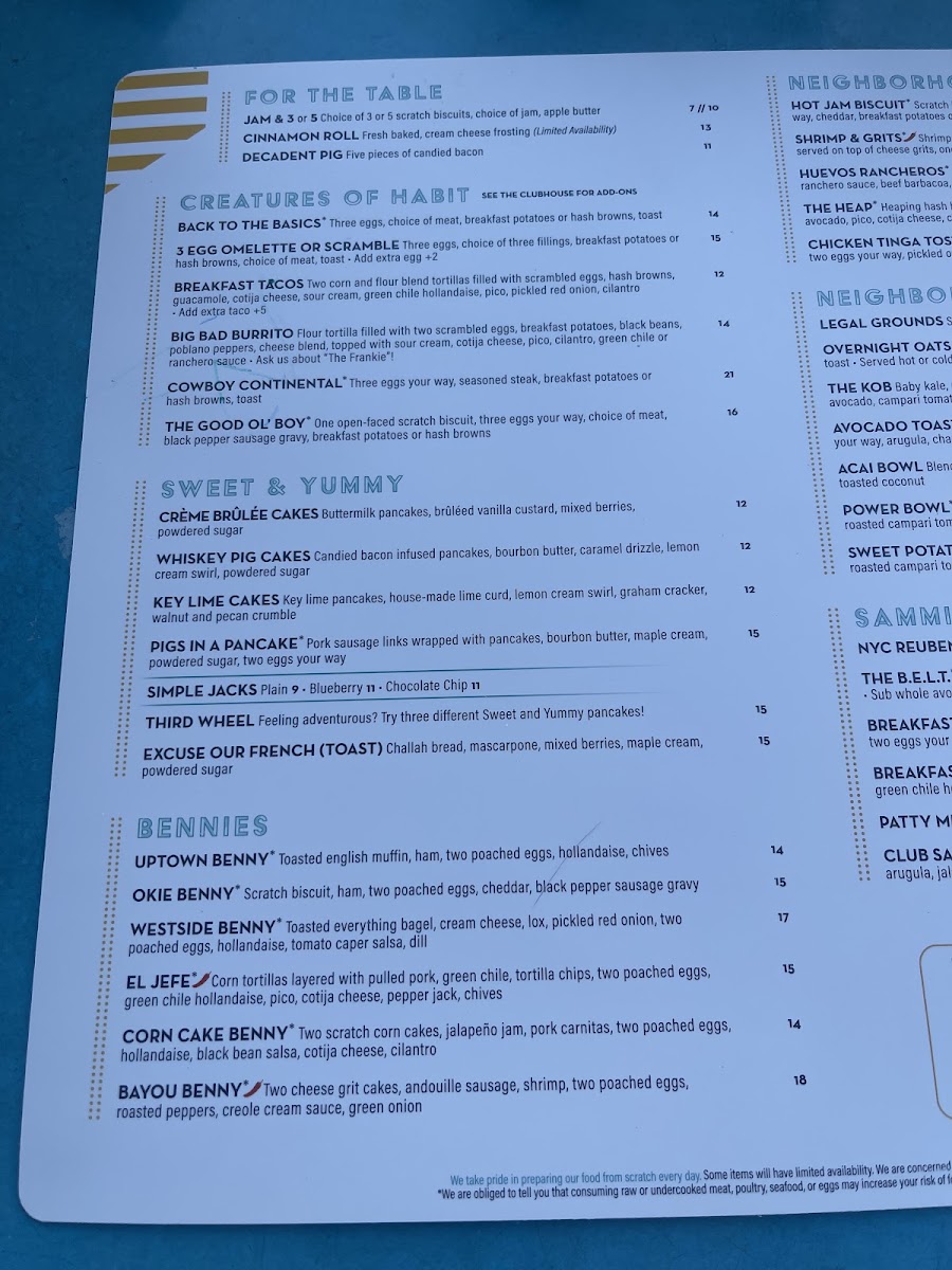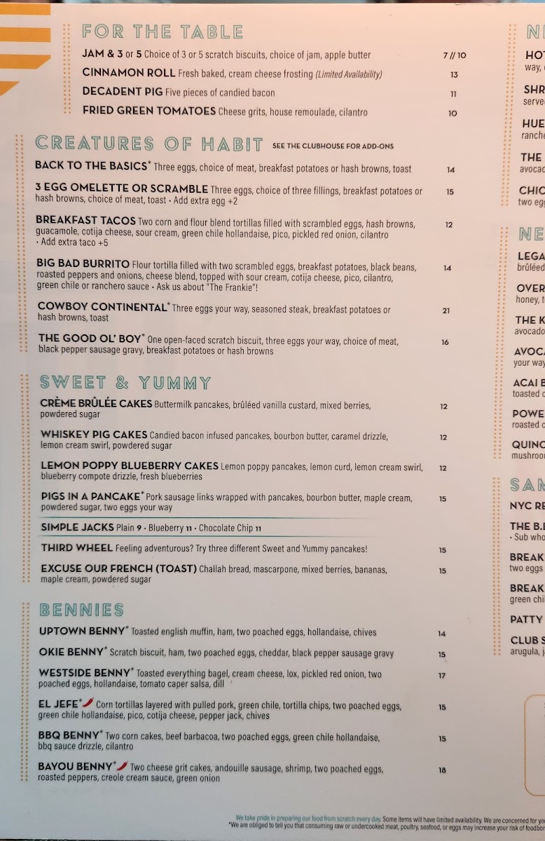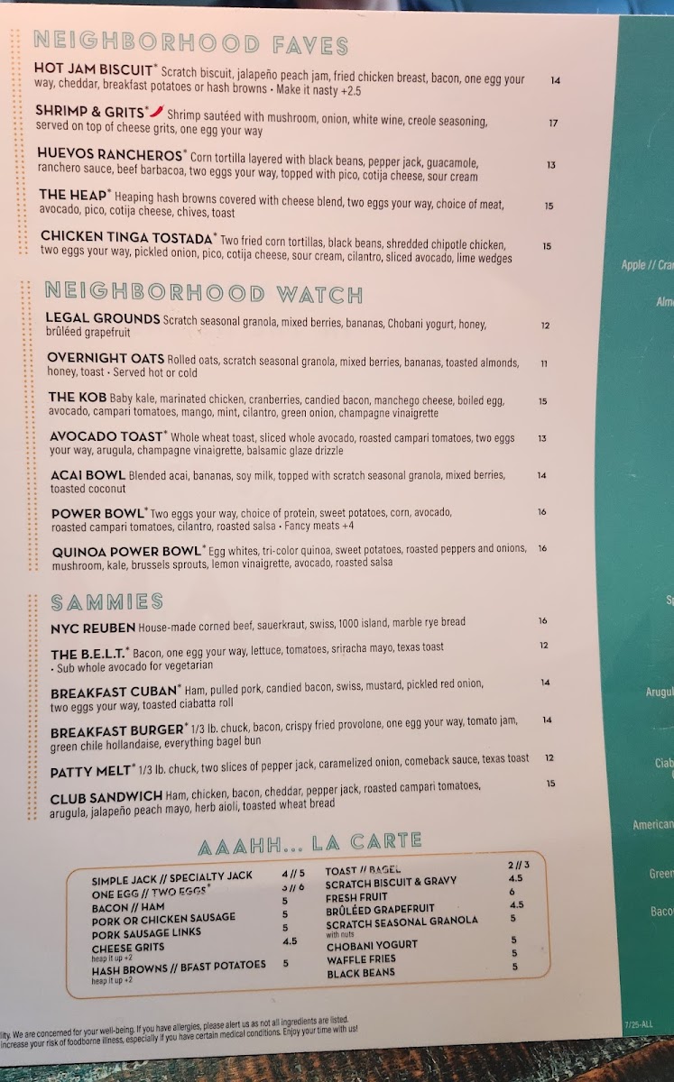 If you're craving something more hearty, the Neighborhood Watch menu presents options like the Legal Grounds—a nourishing bowl of scratch seasonal granola, fresh fruit, Chobani yogurt, and a bruleed grapefruit that embodies both flavor and health in each bite. The Oats & Hay dish further elevates your breakfast game with rolled oats, fresh fruit, and a side of toast, served warm with milk and brown sugar.