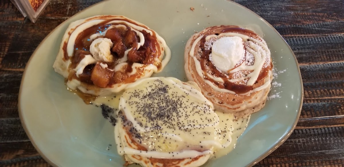 For those with a sweet tooth, the Chocolate Chip Jacks serve up three fluffy buttermilk pancakes generously studded with chocolate chips and crowned with a decadently rich cream and chocolate swirl—an indulgence that is simply irresistible. Alternatively, the Blueberry Jacks offer a fresh twist, featuring three pancakes bursting with juicy blueberries and drizzled with sweet blueberry syrup for a delightful breakfast treat.